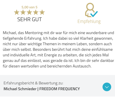 FREEDOM FREQUENCY® ist die Rückkehr zu deiner wahren Essenz. Es ist der Raum, in dem Kampf und Anstrengung enden und eine tiefe innere Ruhe beginnt. Es geht nicht darum, noch mehr zu tun oder zu leisten – sondern darum, die Frequenz zu verkörpern, in der Erfolg, Fülle und Freiheit ganz natürlich fließen.